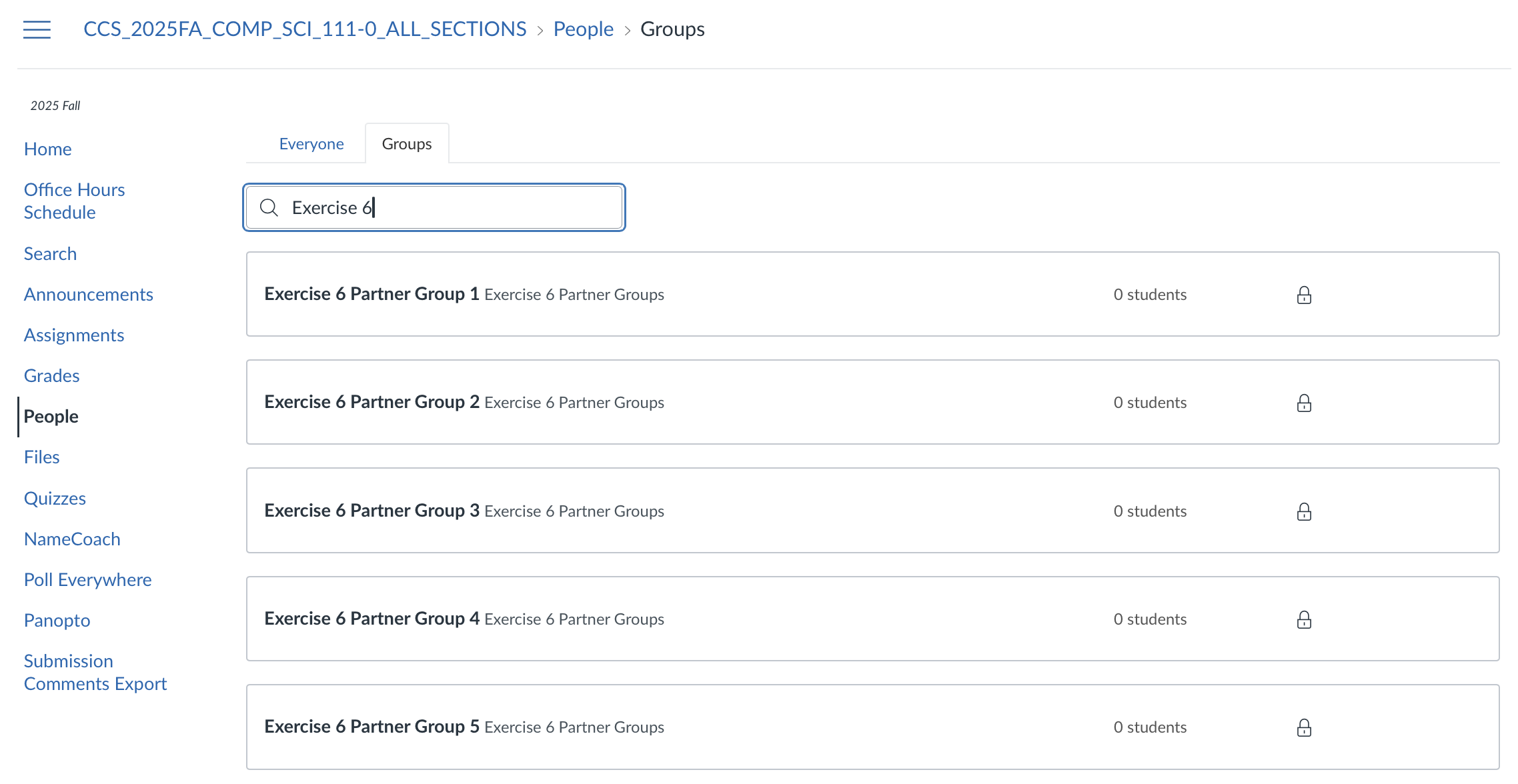 Step 3. Use the search box to search for groups with "Exercise 6" in the group name.